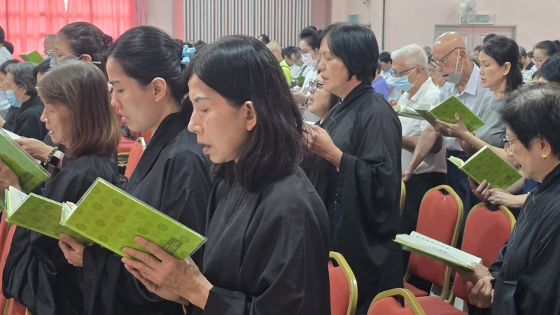 Firstly, we shall first try to develop a sincere and pious mind; calm down our wandering mind. We shall develop a caring and compassionate mind towards both our living and deceased parents. After that, we should broaden our compassion and care to include all sentient beings. Most Venerable Wei Wu also reminded the congregation to sincerely pray for the compassionate blessings of the Triple Gem, so that all sentient beings, our parents, may receive the supreme merits of today's Dharma Assembly and be liberated from suffering to attain happiness. At the same time, before participating in the Dharma Assembly, we should do our best to avoid any activities that may distract us or disturb our peace of mind.