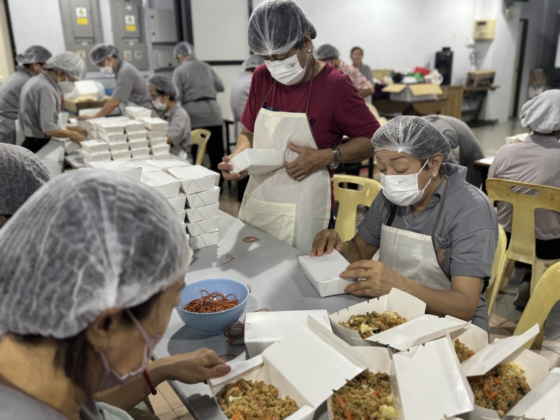 Starting from 7:30 AM, the Than Hsiang Temple canteen provided eight- treasure porridge and steamed buns to the public for breakfast. Concurrently, volunteers also began to prepare savory packed rice boxes to be provided as lunch for the public. Furthermore, in the Main Shrine Hall on the sixth floor, the Noon offering to the Buddha was also held at 10:45 AM. The Noon Offering session attracted many people to the Main Shrine Hall, who participated joyfully.