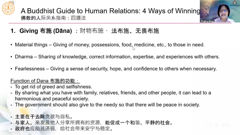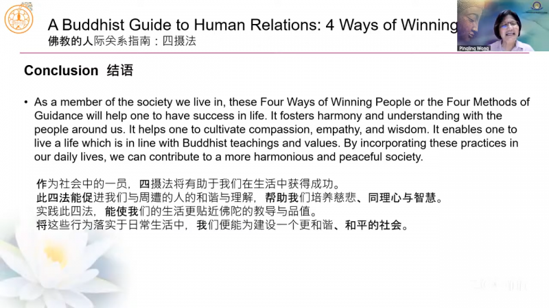 Teaching Assistant of International Buddhist College, Sis Wong Ping Ling shared on " A Buddhist Guide to Human Relations: 4 Ways of Winning People ".