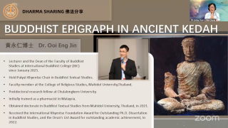 Lecturer and the Dean of the Faculty of Buddhist Studies at IBC, Dr. Ooi Eng Jin sharing "Buddhist Epigraph in Ancient Kedah"
