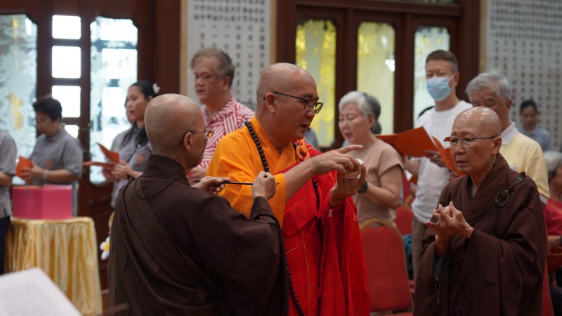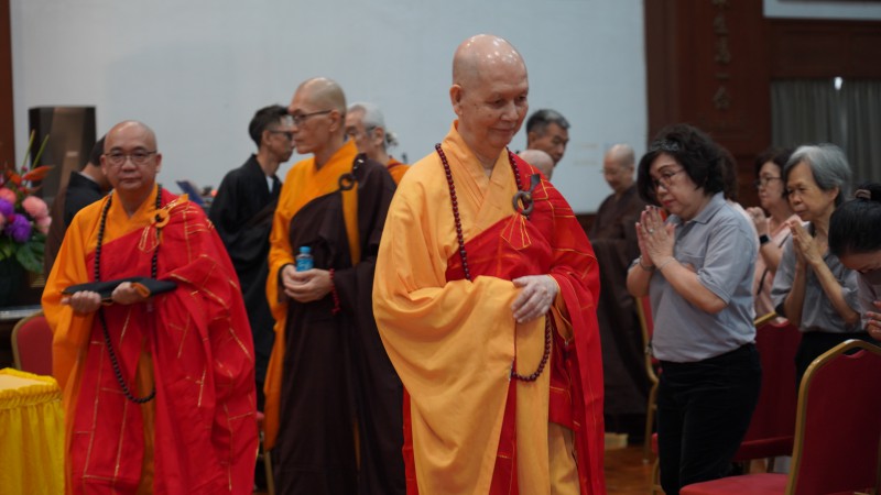 Following the Installation Ceremony officiated by the Founding Abbot, Most Venerable Wei Wu, a prayer bead was presented to the newly appointed Abbot, Venerable Zhen Sheng. Upon completion of this segment, the ceremony proceeded to the Noon Offering session.