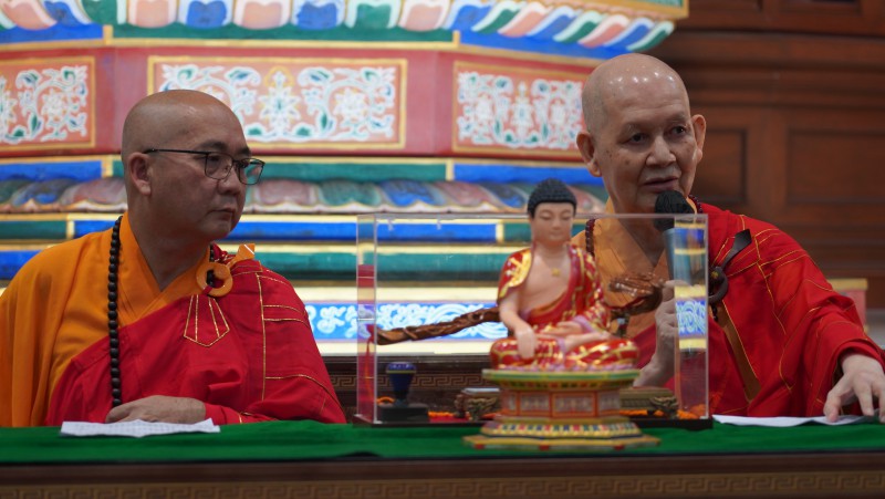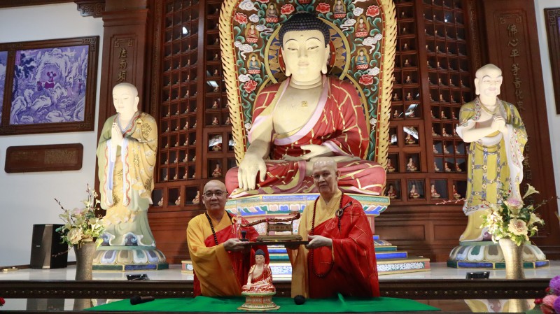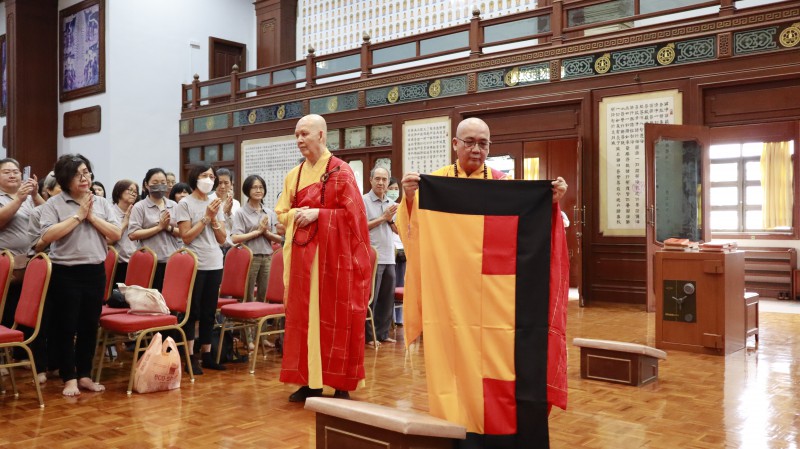 After the offering, Most Venerable Wei Wu presented the symbolic token of abbacy to newly appointed Abbot, Venerable Zhen Sheng before delivering his speech, in which he highlighted five key points: