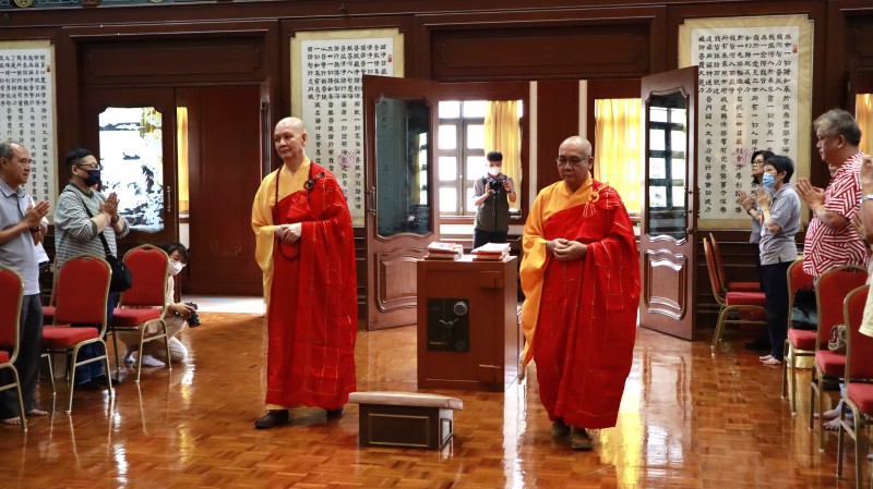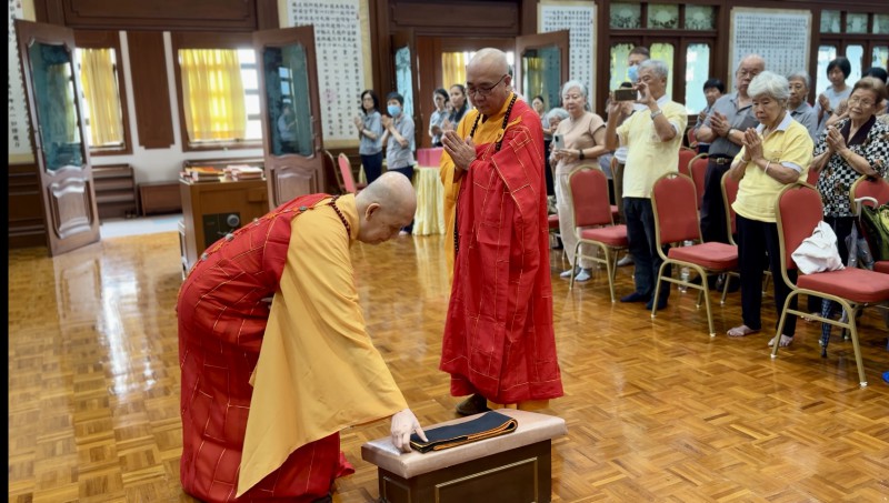 After the speech, a group photo was taken. The newly appointed Abbot, Venerable Zhen Sheng, proceeded to the Ancestral Hall to paid homage, accompanied by Venerable Zhen Ru.
