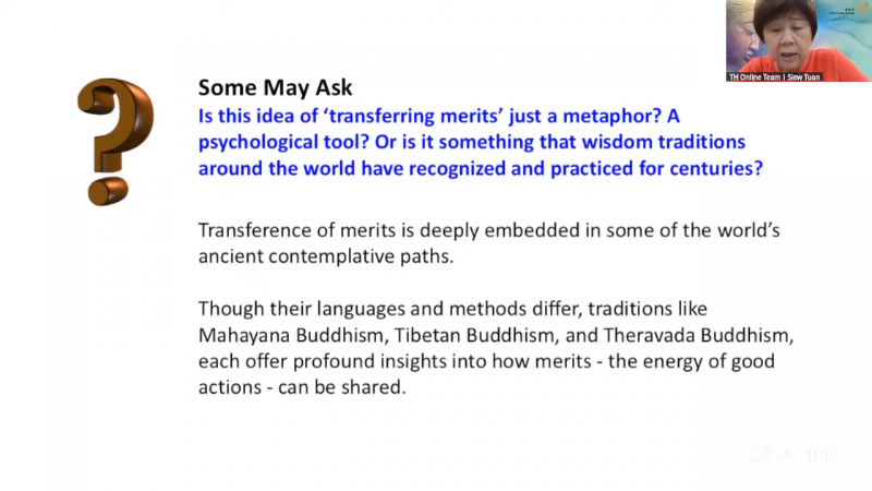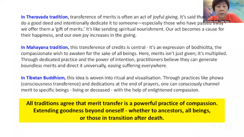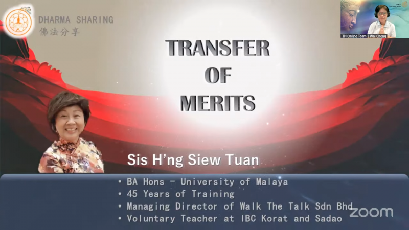 Voluntary Teacher at IBC, Sis H’ng Siew Tuan sharing " Transference of Merits "