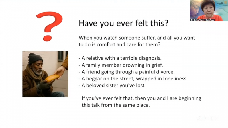 After listening to someone, think: May the comfort I tried to offer, and the merit of this patience and compassion, become a seed of peace in their heart.