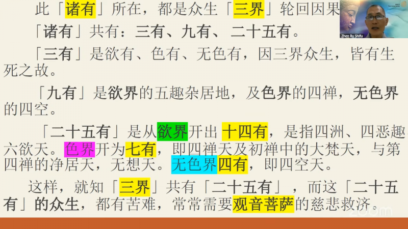 这样,就知「三界」共有「二十五有」 ,而这「二十五有」的众生,都有苦难,常常需要观音菩萨的慈悲救济。