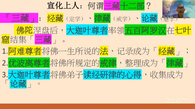 3. 大迦叶尊者将佛弟子读经研律的心得,收集成为「论藏」。