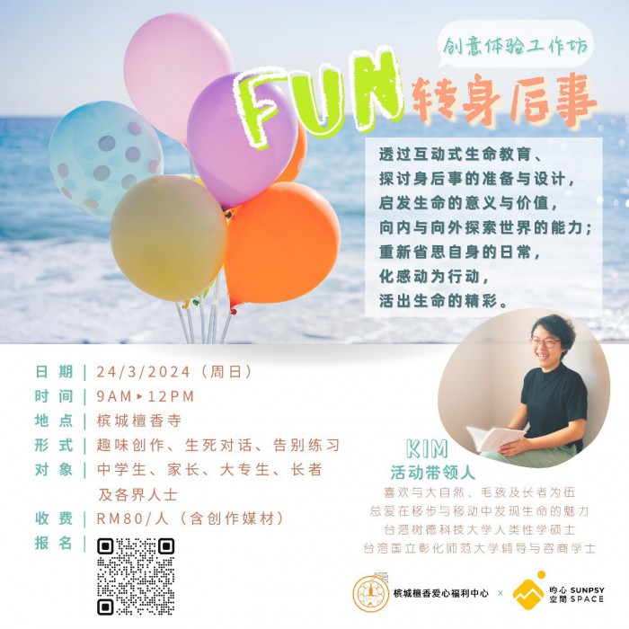 我们都欢迎你一起来感受「FUN转身后事」的朝气和欢乐。 告别可以不需要煽情灰暗,我们也可以谈笑风生、笑看人生。