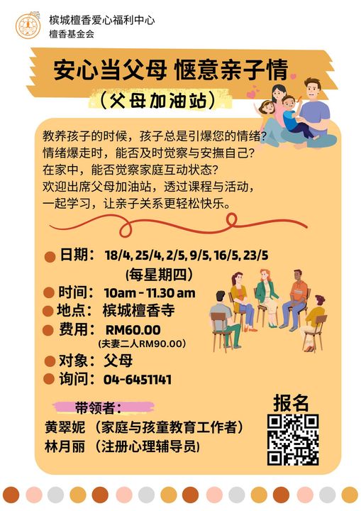欢迎出席父母加油站,一起和黃翠妮家庭与孩童教育工作者,林月丽注册心理辅导员透過课程与活动,让您能觉察自己情绪、学会倾听,一起学习;加油站的父母亦能彼此回馈与分享,相互支持,让亲子关系更轻松快乐!