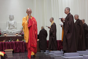 中午十二时四十五分,众法师带领信众回向,2010年斋僧育僧大会即告圆满结束。