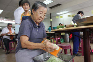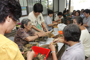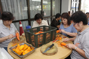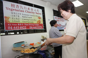 九月素食推广周里,檀香寺除了设有随缘乐捐经济饭、自由餐、各熟食小档还有爱心饭盒外卖。在这九天的素食周里,获得义工们的鼎力支持及帮忙,才得以圆满举行。每天早上,各位义工准时抵达檀香寺准备应付排山倒海似的爱心饭盒外买订单。除此,大家还帮忙中午时段的素食自由餐。义工们一些负责切菜、洗碗、下厨、收拾餐桌等等。