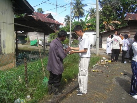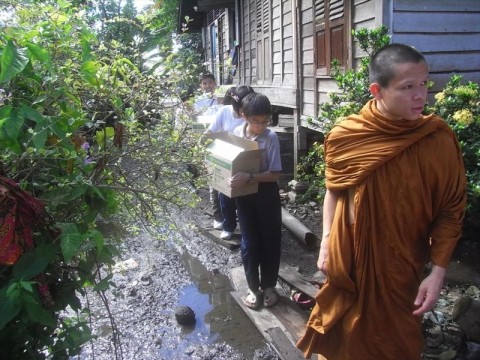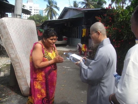 十一月十二日,檀香寺与玻璃市佛教会合办《玻璃市赈灾活动发放救济品》。