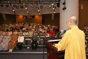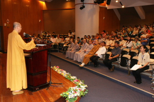 法师说,以往的电影节,我们都是坐享其成地观赏来自世界各地的佛教电影。这一回,很欣慰能看到有两部由本地佛教团体制作的影片。在我国,汉传、南传与藏传三大佛教传承并行发展,在其他国家是不容易见到的;这是马来西亚佛教的特色,现在应该让我们制作佛教电影来回馈世界其他地区的佛教徒。虽然这将会是一个难度不小的挑战,但是只要我们有决心,就必定可以做到。