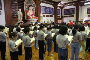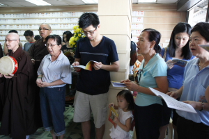 真如法师开示后,与常住法师带领信众们诵念《佛说盂兰盆经》,佛前大供后法师们与大众在底楼大愿殿回向功德,圆满结束这次的《佛说盂兰盆经》共修法会。
