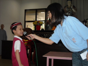 大会也在这个意义非凡的时刻,特访问了几位小朋友,看看他们有没有把师父的意念,把“爱”说出来,并要他们个别说出心目中妈妈的优点,孩子们也很大方,一一说了出来,逗得大家乐开了怀。在大众面前听到孩子们的赞美声,父母亲的脸上挂着一丝丝甜甜的笑容,幸福的画面非笔墨所能形容。