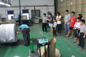 过后,梁素纶女士带领大众到底楼参观印刷的过程。面对一卷卷各重达450公斤的印刷纸,大家频频对它惊叹不已,当然也免不了提出相关的问题。梁女士说,每卷纸可印2万份报纸。由于每日必须应付庞大的印刷量,而且从国外订货相当耗时,所以一般上都会保持3个月的印刷纸库存。