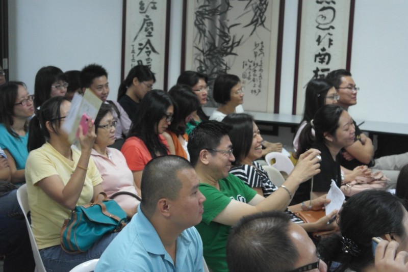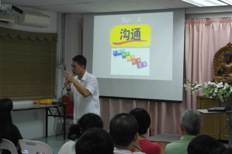 8月23日,檀香寺底楼多元化礼堂举办了一场以《男人不坏,女人不爱,女人不慧,男人不爱》为主题的两性关系讲座。当晚整个讲堂爆满,观众带着激情的心情,来观赏讲师叶宝心(Sam Yeap)幽默风趣的演讲方式。叶讲师以本身的经验加上带领过十多年“美满关系工作坊”的心得与大家分享在两性关系里所面对的问题与应对方法. 一段婚姻或一段关系刚开始时都很甜蜜,但经过了一些日子后都会出现一些疑问,为什么不是如故事里的结局一样,公主与王子从此过着幸福与快乐的日子?