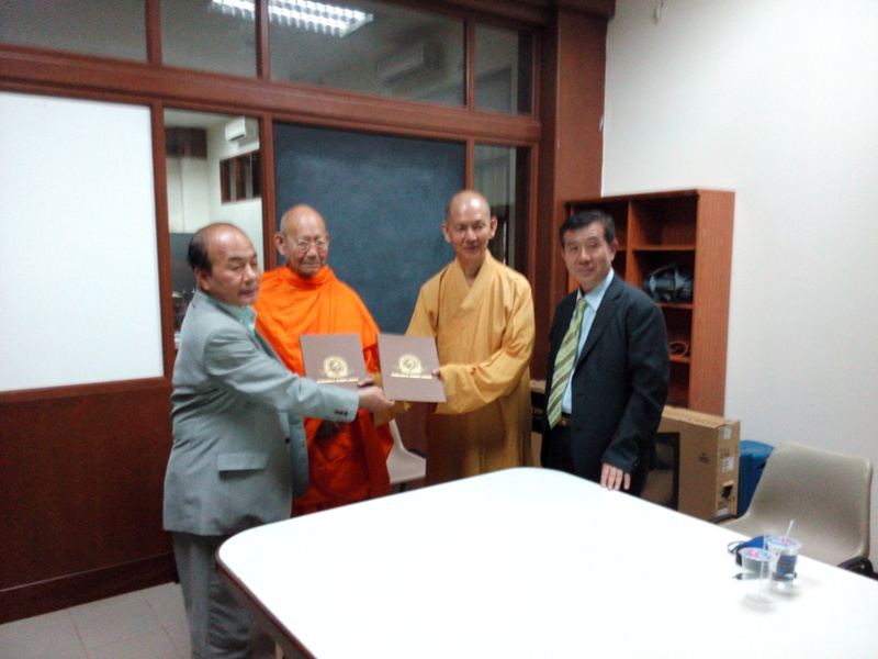 几天前受唯悟法师委托帮忙載送韩国贵賓前往国际佛教大学签署学术合作备忘录。 6月23日供僧法会结束后,我们一行人匆匆趕去泰南。抵达大学后已是傍晚时分。贵賓们参观大学后,便与唯悟法师签署备忘录。此团共有六位韩国嘉賓。队长为留学英国伦敦大学的李治兰博士。李博士目前为海东经典学院院长,也从事翻译工作。队友有韩国東国大学‘Dongguk University’ 主席 Dr. Hu Sung –Hyun、韩国南傳长老会Ven Sambuddha Sasana Jotika Sanganayake Maha Thero長老、二位東国大学硕士班研究生与一位女教授。Dr Hu 代表東国大学‘Dongguk University' 与国际佛教大学签署备忘录。