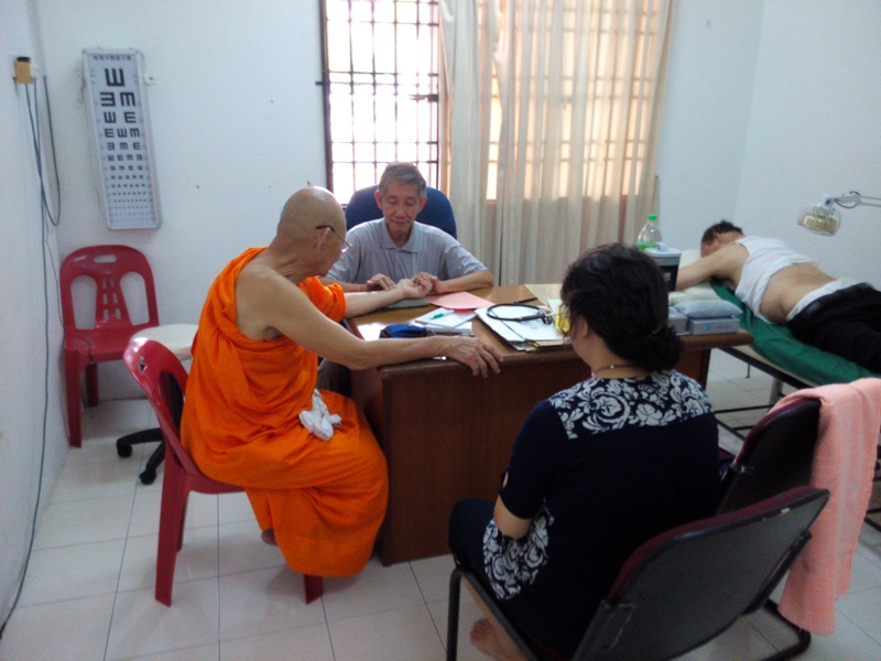 之后我们顺路参访双溪大年檀香净苑与幼几院。由于Dr.Hu与李博士在车上坐了好几个钟头,腰痠背痛。我也就顺手帮两位针灸治疗;也为长老打脉。长老每日打坐修行三次,身体非常健壮。