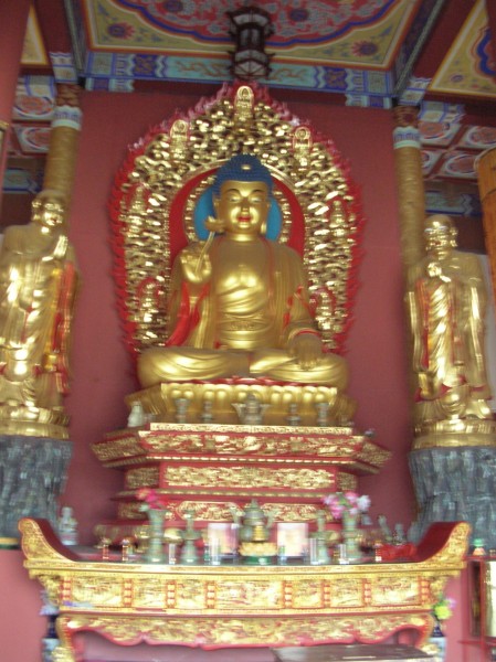 2000年10月,由博鳌亚洲论坛副理事长蒋晓松先生个人施资,在万泉河中的莲花墩上竖起一座高9.9米的观世音菩萨塑像。在导游的引领下我们参观了禅寺中的万佛观音塔中尼泊尔国王贾南德拉赠送的释迦牟尼佛佛祖的铜质镏金佛像。因为时间的关系,我们站在塔上远眺长寿千年的古代奇花“大贺莲”的莲池,没看见花。诺大的寺院,我没看见一个出家人,好怪的现象!