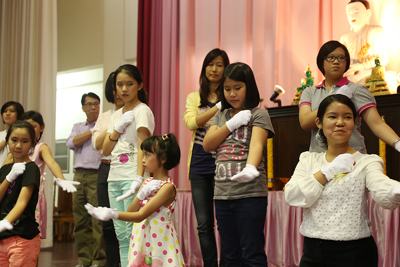 献灯仪式后,接着是余兴节目,除了泰国传统舞蹈MANORA, 还有来自槟城的檀香法音合唱团合唱佛曲,檀香周日佛学班呈献手语《一家人》 。压轴节目则是义净佛学院的师生清唱国际佛教大学校歌:For the Good of the Many。
