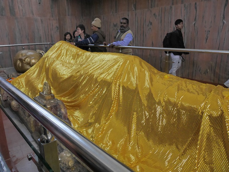 吃早餐后向拘尸那伽(Kushinagar)出发。目的地是佛陀示现涅槃的遗迹-----大涅槃寺(Maha Parinirvana Temple)和大涅槃塔(Maha Parinirvana Stupa)。