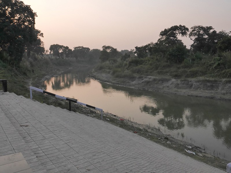 参观跋提河(Kakuttha River),佛陀涅槃前最后的沐浴处。师父在那里领导我们诵念《心经》。
