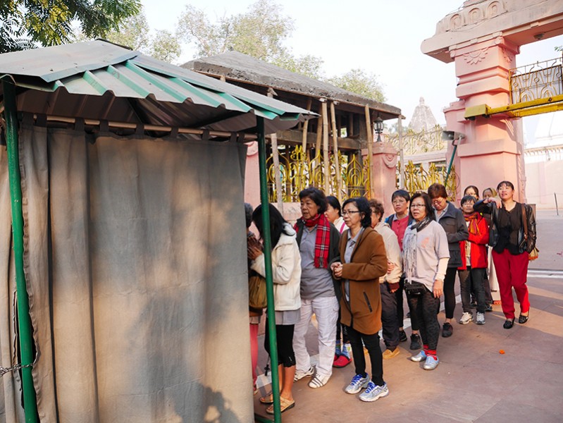 前往新德里国际博物馆学院(National Museum Institute)。博物馆讲解员带领我们参观印度的历史文化遗产,并一一的向我们解释。还有,最重要的、最最开心的以及最有意义的,就是让我们在这所博物馆里亲眼见到了佛骨舍利----被供养在金色舍利塔里。师父把握机会,带领我们绕塔念佛,离开前我们各自回向和许愿,大家心中充满法喜,弥补我们去不成毗舍离的失落感。