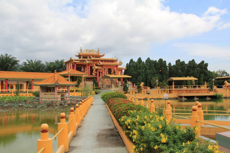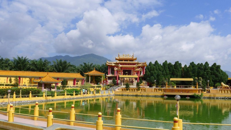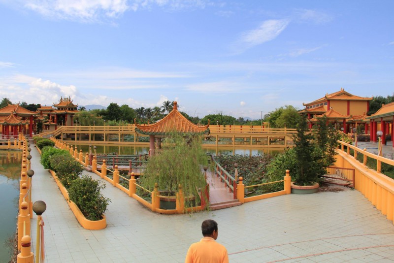 行程的第一个驛站,我们来到了珠宝(朱毛)善学院(孔圣庙)玉皇宫殿。善学院是闻名遐迩的旅游景点,有古色古香色彩的庙宇。宮殿前的人造湖搭建了一座200多尺长的奈河桥,衔接了四大星群涼亭,彷彿在守候着玉皇宫殿。沿着雕塑美焕的假山、许愿池,美景尽映入眼簾,彷彿置身在景色怡人,湖光山色的 “中国花园”中!