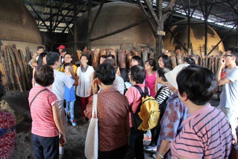 吃完午餐,选购了一些当地的土产后,我们来到了十八丁的碳窑广,此行业已延续了整百年,已传到第三代的掌门人了。经砍伐了的Bakau树剖掉树皮之后,切成标准的长度,然后整齐的排列在半圆形的窑炉中,然后再用黄泥把窑口密封再熏木材,就是必须日夜的守护着火种不让火熄灭。一个月之后就可以大唱丰收,把一块块圆形发金的黑炭。