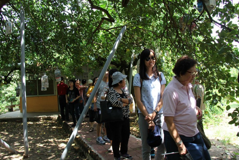第二站我们来到了打扪(Tambun)有机柚子园,这也是属于生态的旅游区。柚子园大唱丰收,硕大的柚子掛滿树梢,呈现一片绿色生机,让人精神一振,这也是园主们一份耕耘,一份收获辛勤得来的果实! 听负责人讲解之后才瞭解到原来柚子全身都是珍贵的宝,包括了果实、叶子、花、果皮。柚子的花还可以提炼出精油,做为美容的用途。