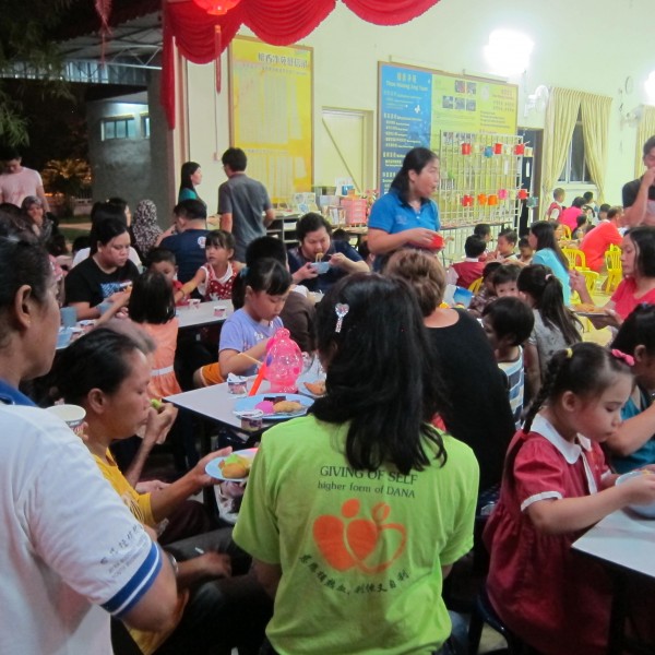 观赏了视频,来宾们就开始品尝香积膳食组的菩萨们和部分出席者所准备的各种素食。大家一面聆听与中秋节有关的应景歌曲,一面大快朵颐,欢乐气氛处处飘扬。部分出席者在用餐完毕就忙着射灯谜并把答案写在小纸上。
