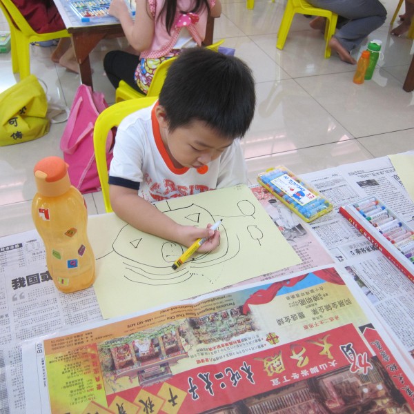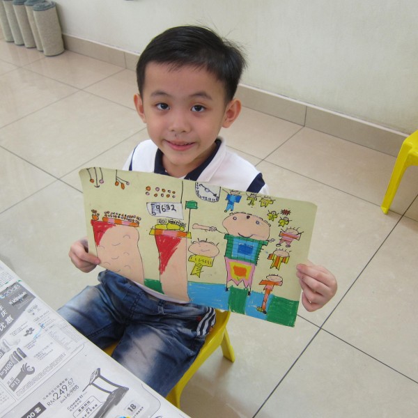 负责绘画比赛的Uncle Tan以风趣的口吻带动着小朋友,让小朋友观赏小故事后凭着自己的记忆,把所看到的,想到的绘画出来。小画家观察力强,思想敏锐,分析细节的构成,童趣盎然。小画家所画的人物造型、动作都超赞,仅以几种色彩搭配,就能完好呈现一幅图画,令人惊喜。