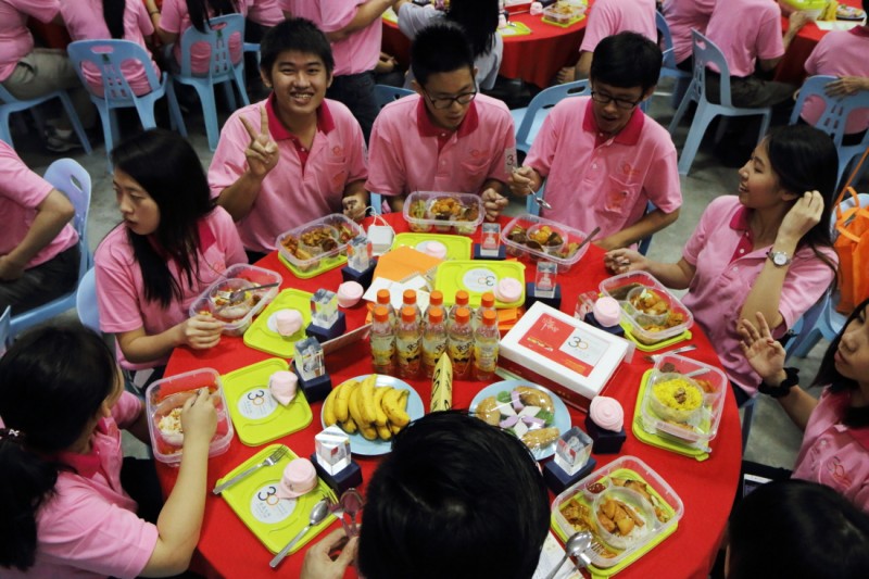 当晚,槟城檀香寺于菩提国民型中学六楼大礼堂设自助餐会款待各界佛友及善心人士以示感谢他们一直以来的护持。当晚的流程如下:傍晚六点半佛友们开始陆续入场。待大家入席后,先有檀香法音合唱团演唱檀香主题曲——“檀香荡尘氛”,再进入师父开示环节。从中,大家得以清楚晓得檀香多年来在各方面欣欣向荣之发展概況。得知檀香成功一再增盖多所修持中心、奋力兴办教育设立大学等,大家无不脸带笑容,为将来能受惠之修行人与学子们感到欢喜。