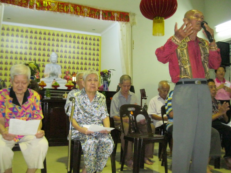 岁月如梭,韶光荏苒,转瞬间又到了双溪大年檀香净苑这个大家庭的成员热闹团圆的美好时刻。2016年1月29日(星期五)傍晚6点30分,双溪大年檀香净苑乙未岁末团圆晚宴掀开序幕!大众列队拿取香积菩萨们准备的美味佳肴后就座好好享用并观赏以幻灯片形式展示的2015年檀香净苑活动照片。