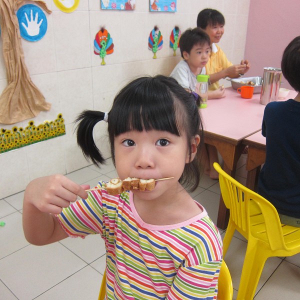 之后,何老师及赖老师教导孩子自行制作下午茶茶点。孩子们在老师细心带领下,精心合作地将一个个面包制作出来,然后享用彼此同心完成的作品。