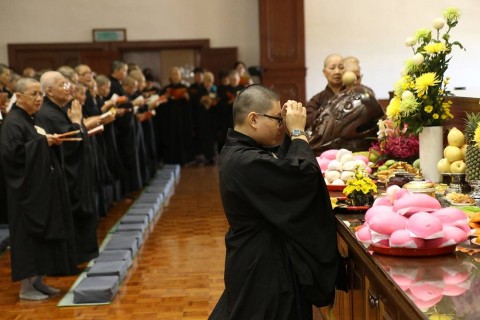 精进佛七道场圆满日上堂说法,弥陀普佛供佛