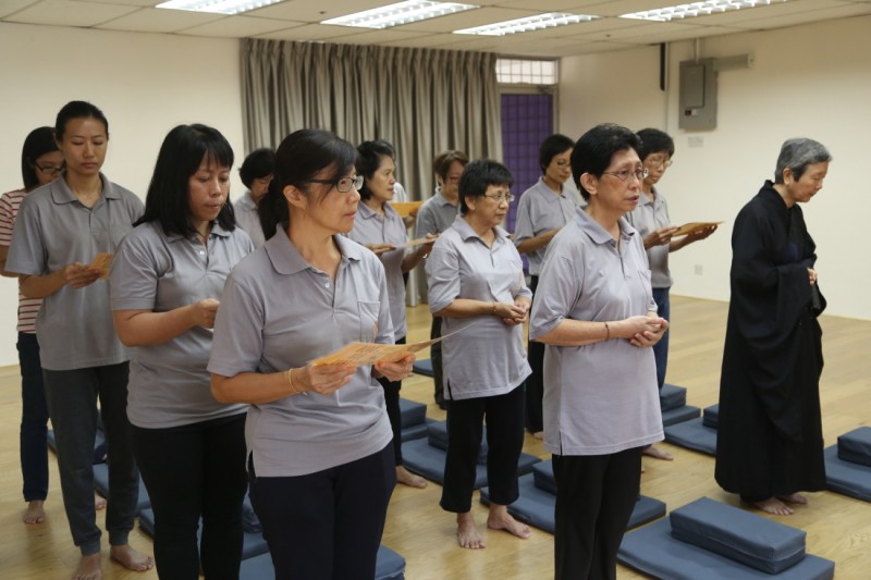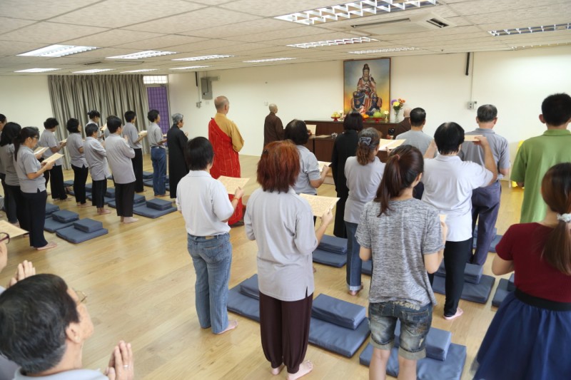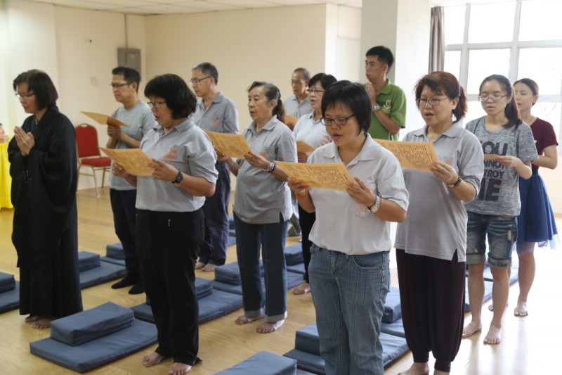 接下来, 师父上人带领大家做晚课。过后, 大家就与师父上人一起享用简单又美味的晚餐。