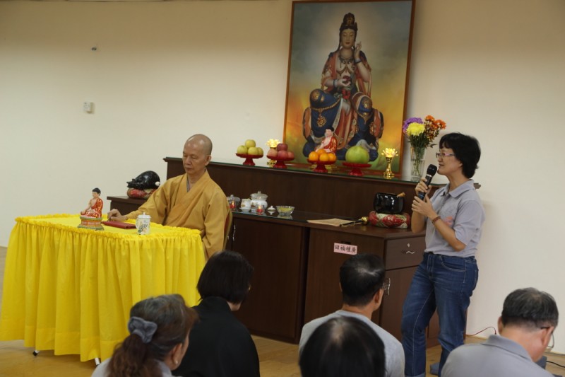过后, 恭请师父上人为大家开示。 师父说,越南人民多数信奉佛教;而越南佛教受中国佛教和印度文化的影响。越南佛教有它的独特点, 就是非常传统, 信徒们非常虔诚, 进入佛堂时, 他们一定要穿著端庄, 不能穿短裤、短裙。曾经有越南法师到檀香寺来, 看到正在共修的信徒, 有些穿着短裤、短裙, 就感到很奇怪, 为何这里的信徙不必穿著端庄也可以进入寺院呢? 越南佛教是属於汉传, 诵经方式跟传统汉传佛教很相似, 但在诵经时, 信徙们是坐着的。