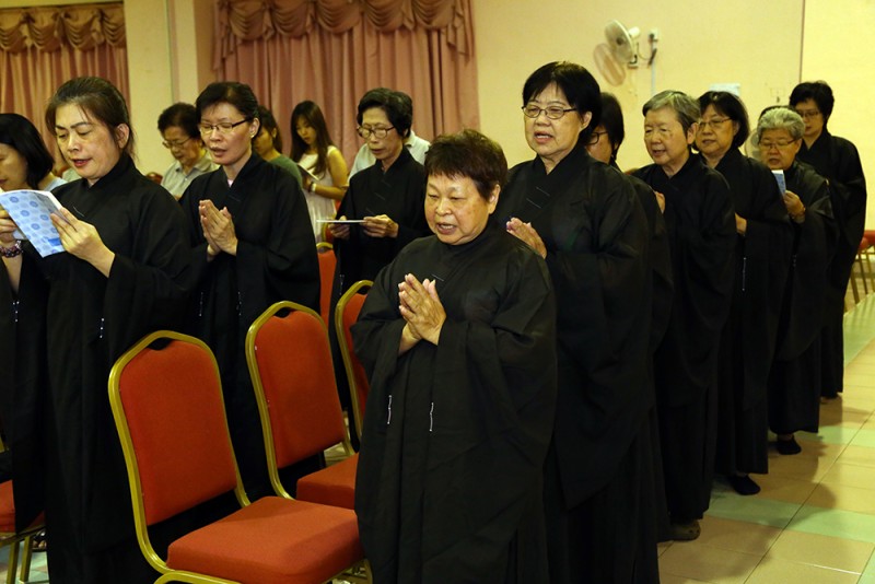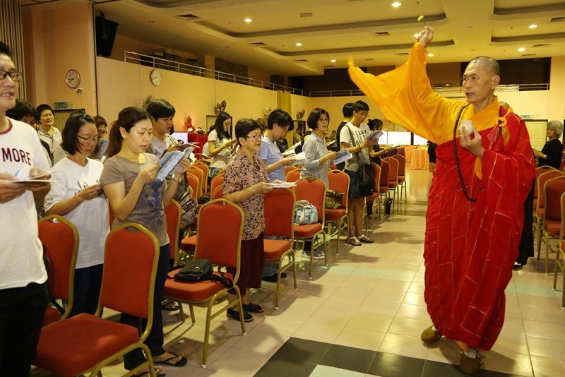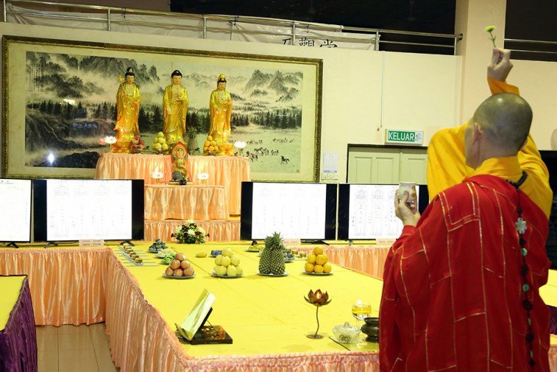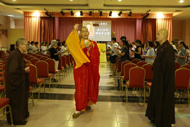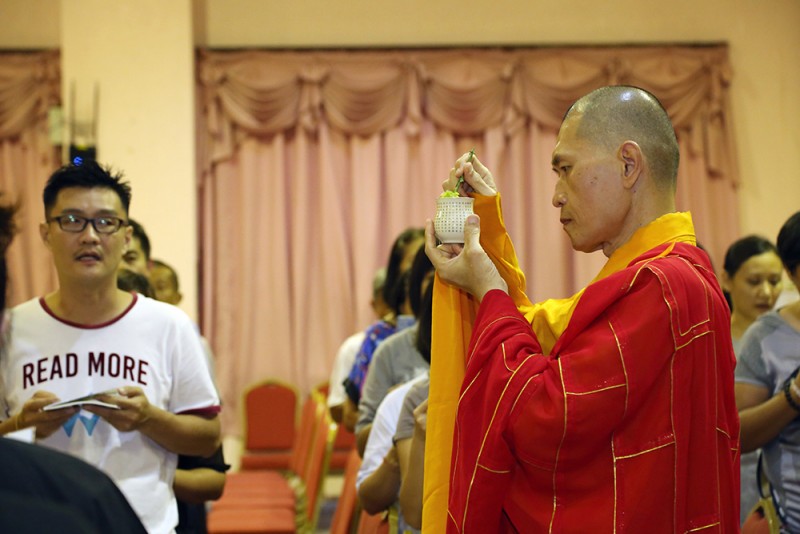 檀香寺于2018年9月3日晚上熏坛洒净,为今年的孝亲法会掀开序幕。真如法师主持洒净仪式,在念诵大悲咒和心经时,到延生坛和净土坛洒净,过后开示佛理,和念诵阿弥陀经。