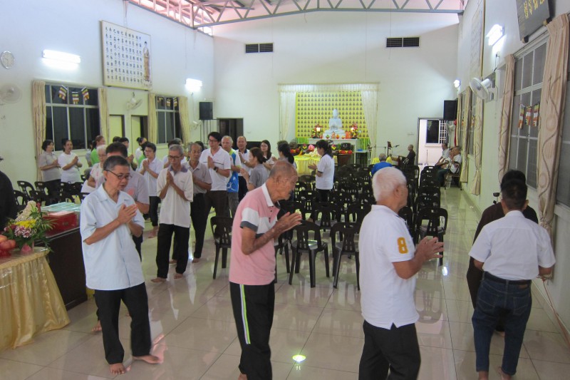 真如法师开示完毕后,大众出班享用茶点才继续共诵“第二系念”和“第三系念”。此时,电视屏幕上出现熊熊烈火的照耀,以及西方三圣前来接引的影像,大众祈求三宝加被〈净土坛〉的先人或冤亲债主皆能往生西方极乐净土,而〈延生坛〉的祈福者都能增福延寿,并祝福参与法会的信众们福寿康宁。孝亲法会在做完晚课后画下完美的句点。大众欢喜地享用晚餐和进行善后工作。