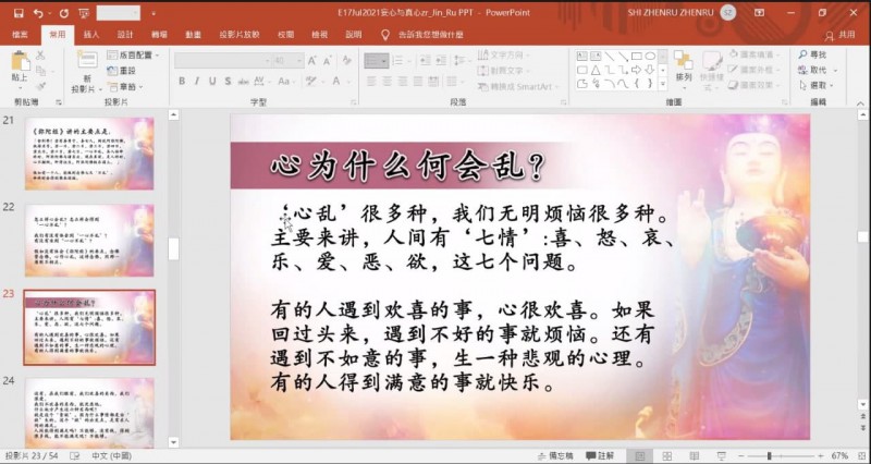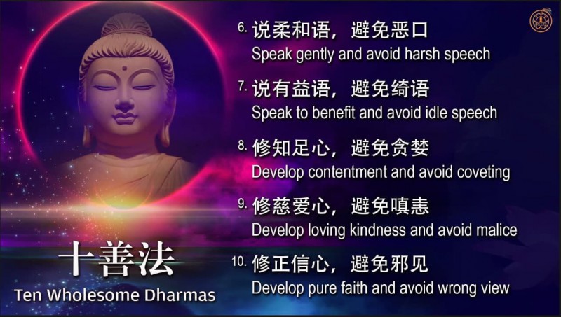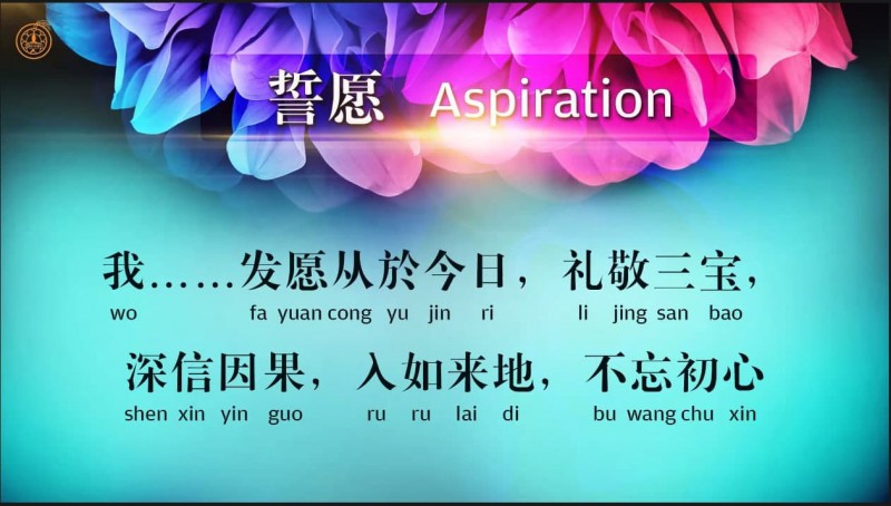 然而却能善用科技,在虚拟背景下,如临佛前,诵读十善法及重温昔日誓愿。