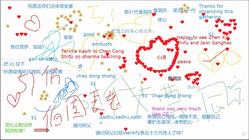二零二一年七月十七日,檀香在家僧团法缘聚集,透过云端平台相聚,