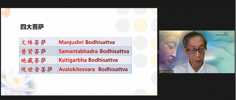 今晚陈如炳居士与大家分享《大悲观世音菩萨》。我们都非常熟悉,且又朝朝暮暮心心系念的“大悲观世音菩萨”。佛教里有四大菩萨:地藏王菩萨、普贤菩萨、文殊菩萨、观世音菩萨。观世音菩萨是中国佛教四大菩萨之一。净土宗西方三圣是阿弥陀佛、观世音菩萨和大势至菩萨;娑婆三圣,是指在娑婆世界净土教育、度化众生的释迦牟尼佛、观世音菩萨和地藏王菩萨。