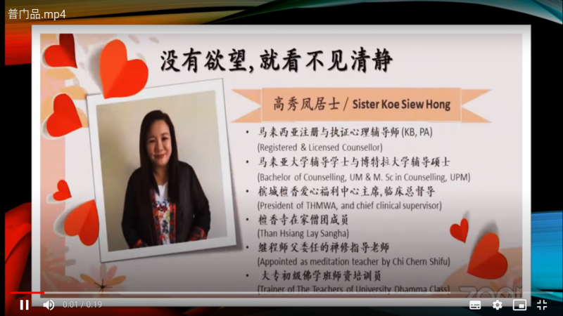 高秀凤居士 - 法谈主题《没有欲望,就看不见清净》
