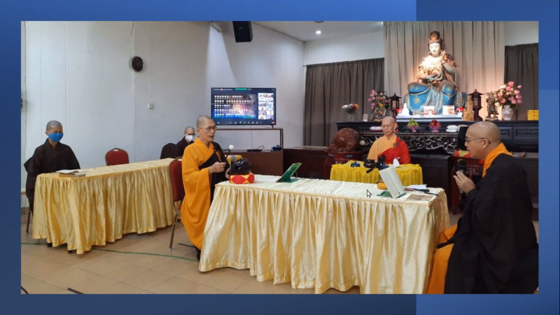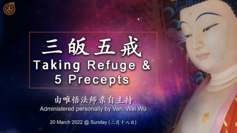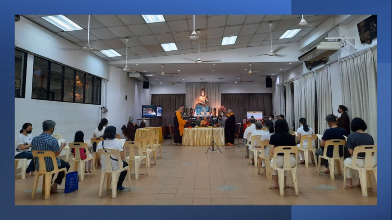 配合观音圣诞,檀香寺每年三度举办传授三皈五戒。今天殊胜的三皈五戒传授仪式首次于3月20日在峇六拜檀香寺底楼大悲殿和线上方式同步进行,从下午2时至3时半的一句半钟完成。