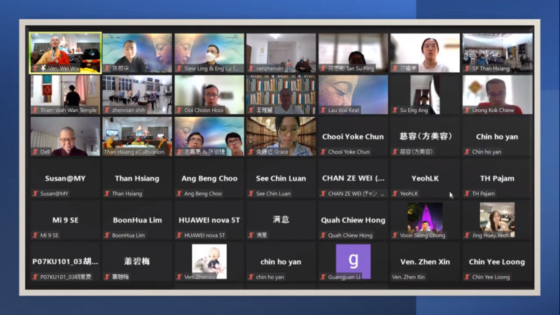 尽管疫情多变,但云端皈依典礼不受影响,不同地区的民众纷纷上ZOOM会议平台报到,透过屏幕可见到一家三代、亲子档等,一幕幕画面令人动容。