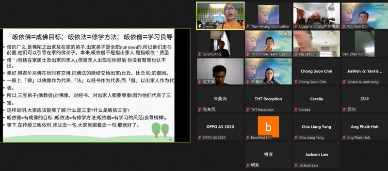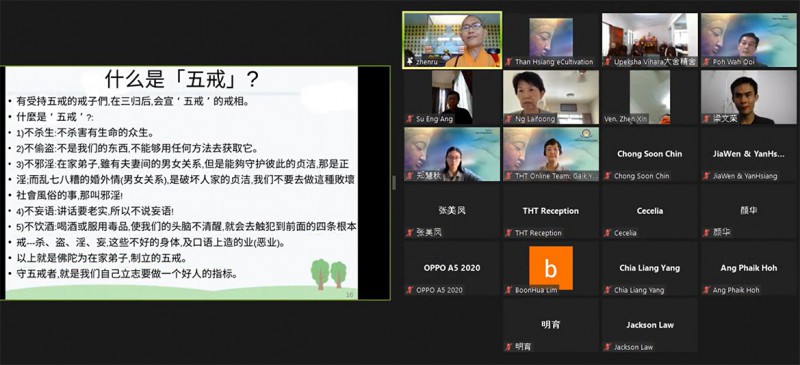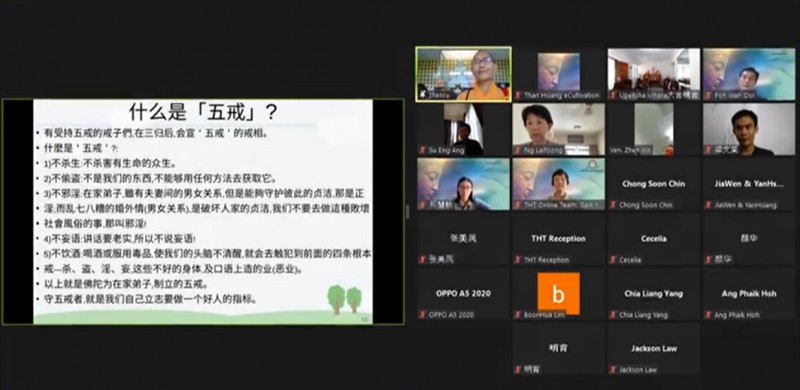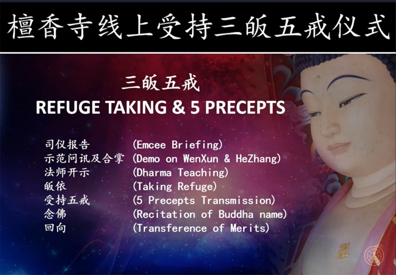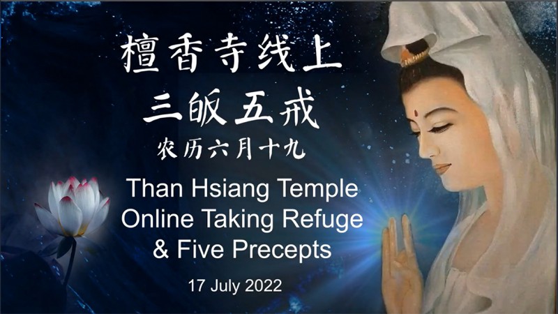 恭逢农历六月十九的观世音菩萨成道日的吉祥日,从下午2时半至4时。在这意义非凡的日子,今天皈依仪式简单亦庄严,40名信众齐聚网上,共有10名信众受三皈依五戒。已皈依三宝的佛弟子,成为正式的佛教徒三宝弟子也在当天“授持五戒”,提升自己的宗教情操,让自己更精进走向解脱之道。