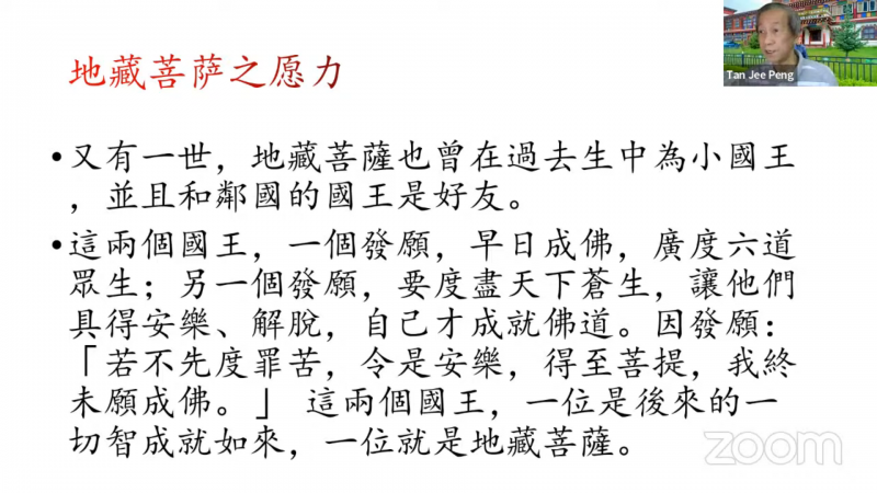 感恩陈居士今晚深入浅出地分享,让我们更了解更亲近地藏菩萨愿力,也从中警惕大家深信因果可以梳理出一套去恶扬善、趋吉避凶的因果秩序,社会也就能够和谐吉祥。