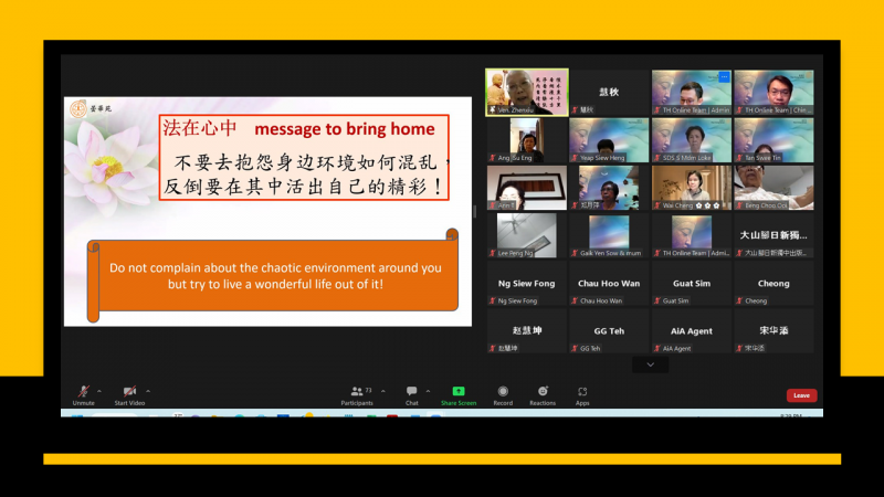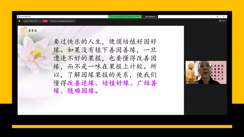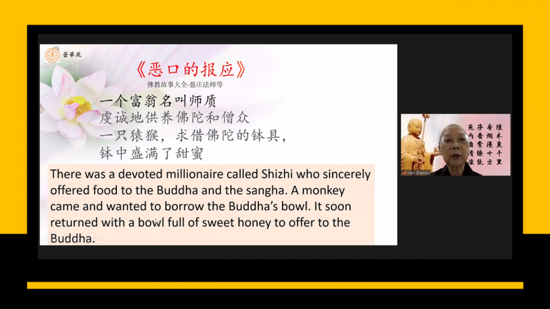 我们感恩檀香寺常住-尊敬的上真下修法师上线为我们开示精彩的说古谈心系列八-小小故事,大大启示。大家在轻松和欢悦的气氛下共赴了一场故事分享会。